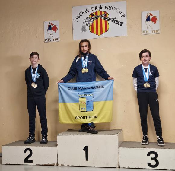 Une belle moisson de médailles pour les tireurs Marignanais lors du championnat de Provence de tir au pistolet 10 mètres totalisant en individuels: 5 Médailles d'OR - 4 Médailles ARGENT- 3 Médailles BRONZE